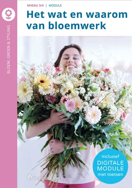 Het wat en waarom van bloemwerk gaat over alles wat te maken heeft met het maken van bloemwerken en waarom dat zo gedaan wordt. Het eerste hoofdstuk vormt een algemene introductie over de werkwijze van vakmensen in de praktijk. Het laatste hoofdstuk heeft eveneens een meer algemeen karakter: daarin gaat het over kleurgebruik en trends. Daar tussenin komen verschillende soorten bloemwerk aan de orde, zoals handgebonden en gestoken bloemwerken en bruids- en afscheidsbloemen. Deze hoofdstukken zijn praktisch van opzet. Naast een beknopte geschiedenis wordt aandacht besteed aan technieken en materialen en worden vele rijk geïllustreerde voorbeelden gegeven. In die zin is de module goed te gebruiken als naslagwerk bij de praktijklessen over het maken van diverse groene arrangementen. Deze module is interactief van opzet. Naast het lesboek heb je toegang tot de digitale module van deze uitgave. Hier vind je naast de interactieve extra’s zoals video’s, animaties en links ook toetsen*.