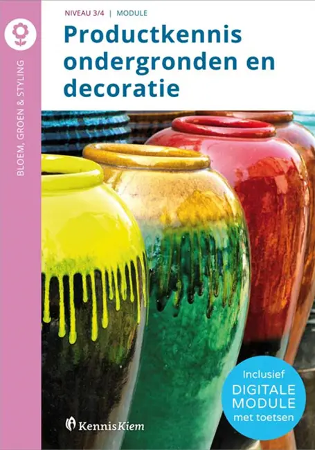 Bij het werken met bloemen en planten gebruik je vaak ook niet-levende materialen. Als bloemist of stylist is het belangrijk om kennis te hebben van al dit soort materialen. Bovendien moet je ze op de juiste manier gebruiken. De module Productkennis ondergronden en decoratie bestaat uit vijf hoofdstukken die tezamen de productkennis over ondergronden en decoratie behandelen. In deze hoofdstukken leer je over de achtergronden en de eigenschappen van de verschillende materialen. Ook leer je hoe en wanneer je ze kunt gebruiken. Aan de orde komen materialen zoals kaarsen en lint en allerlei soorten materialen waarvan ondergronden zijn gemaakt zoals klei (keramiek) en glas.