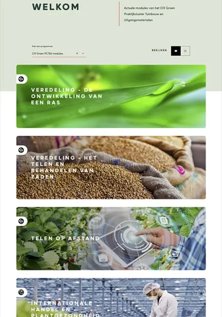 Het CIV Groen Praktijkcluster Tuinbouw en Uitgangsmaterialen (T&U) ontwikkelde 10 online modules over actuele thema’s in de sector. De 9 bestaande T&U-modules kregen in samenwerking met De Groene Wereld een nieuw jasje. Daarnaast ontwikkelden het Praktijkcluster en De Groene Wereld samen de volledig nieuwe module ‘Bemesting, verdieping tuinbouw’. Al deze modules zijn publiek toegankelijk voor werkenden en lerenden in de sector.